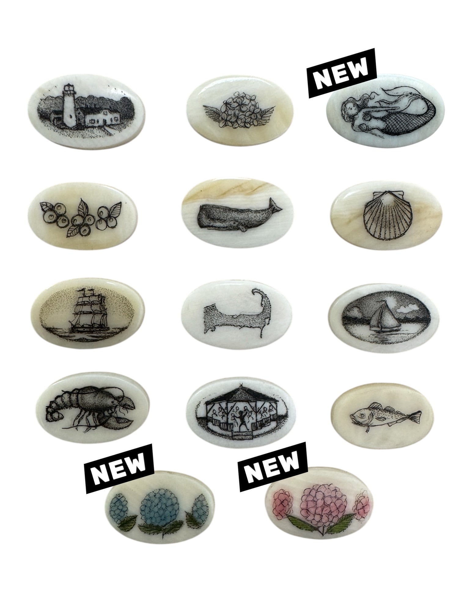 - Choose from thirteen different scrimshaw designs & customize your layout (Please allow 6-8 weeks production time) - indicate your scrimshaw design selections in the order notes