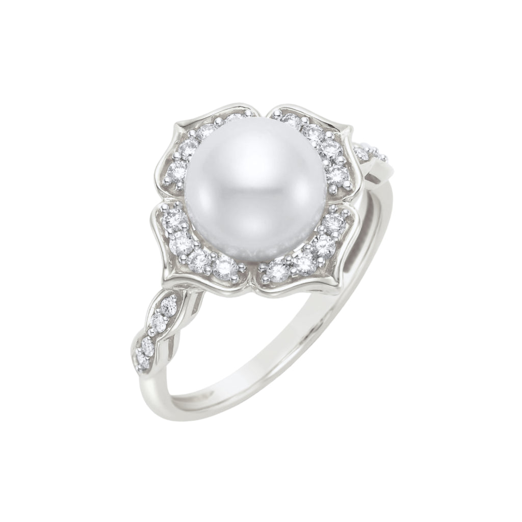 Cultured Pearl & Diamond Swirl Stud Earrings