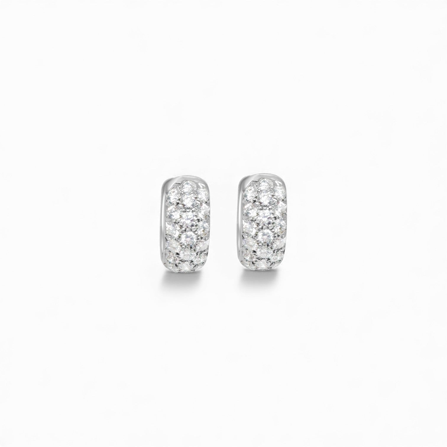 Elevate your everyday elegance with these handcrafted platinum huggie hoops, featuring 0.88 CTW of premium natural round diamonds arranged in three seamless pavé rows. The comfortable 12.5mm design sits perfectly on the ear, while the secure click-in post ensures they stay put through your day and into the night. Versatile enough for any occasion, these chubby huggies deliver timeless sparkle with effortless sophistication.