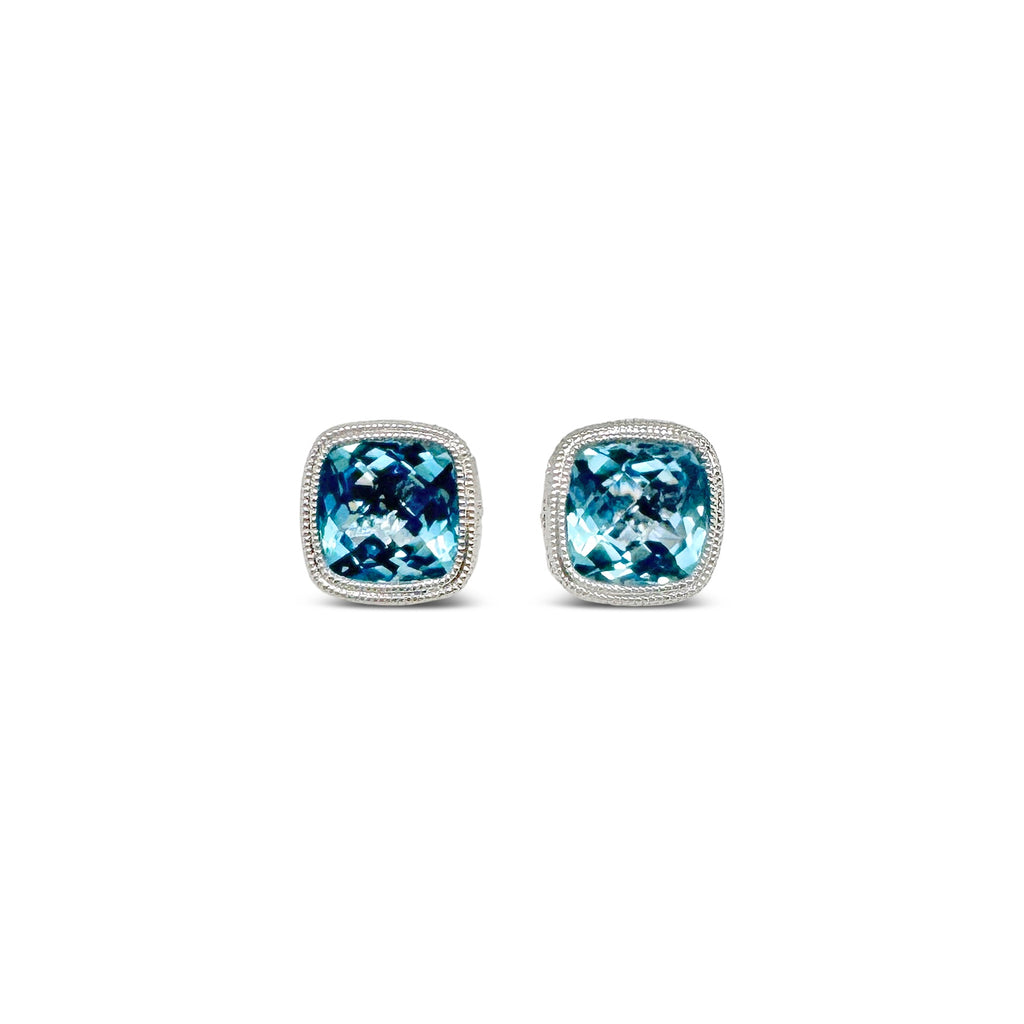 Aquamarine Cabochon & Sapphire Halo Earrings