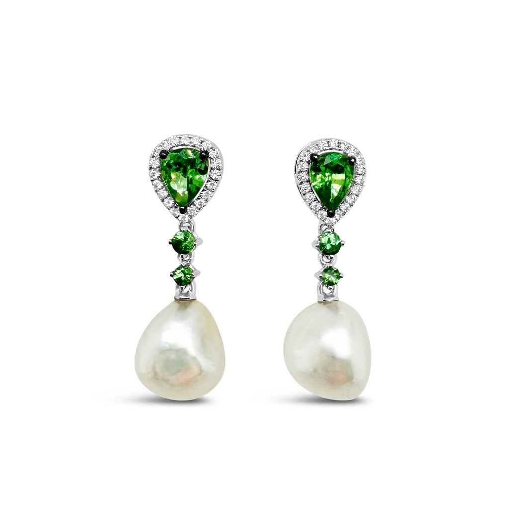 Green Sapphire & Diamond Drop Earrings