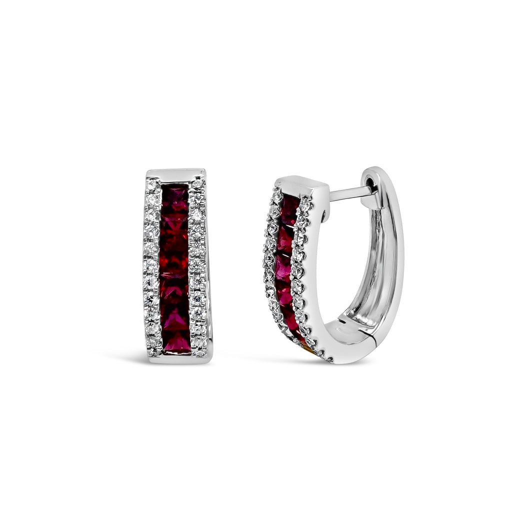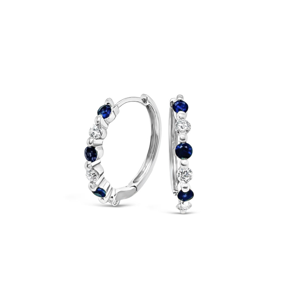 Baguette Sapphire & Diamond Bezel Hoop Earrings