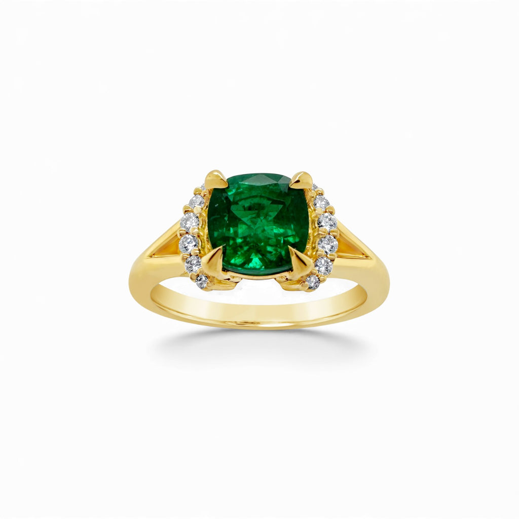 Cushion Emerald & Diamond Demi-Halo Ring