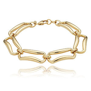 This 14k yellow gold Freeform Rectangular Link Bracelet offers a bold statement without feeling heavy on your wrist. Crafted using electroform construction, it combines lightweight comfort with lasting durability. Measuring 7.5 inches long and 1 inch wide, it secures easily with a lobster claw clasp, making it both stylish and practical for everyday wear.