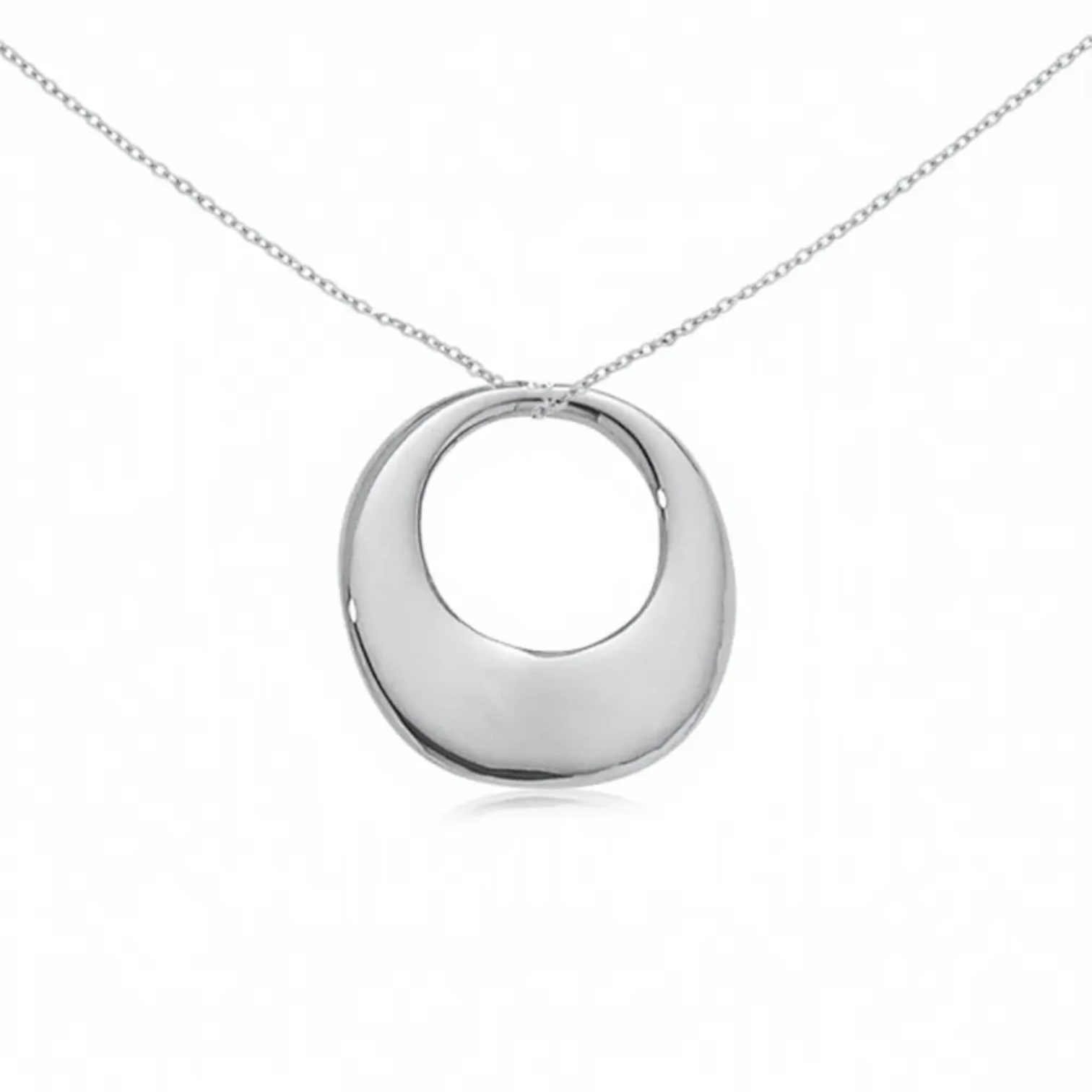 Crafted from sterling silver, the Torqued Circle Pendant Necklace features a modern, freeform puffed circle pendant that adds a subtle yet distinctive touch to any outfit. Suspended from an 18-inch fine cable chain, this necklace offers a delicate, comfortable fit perfect for everyday wear or special occasions, making it an elegant addition to your jewelry collection.