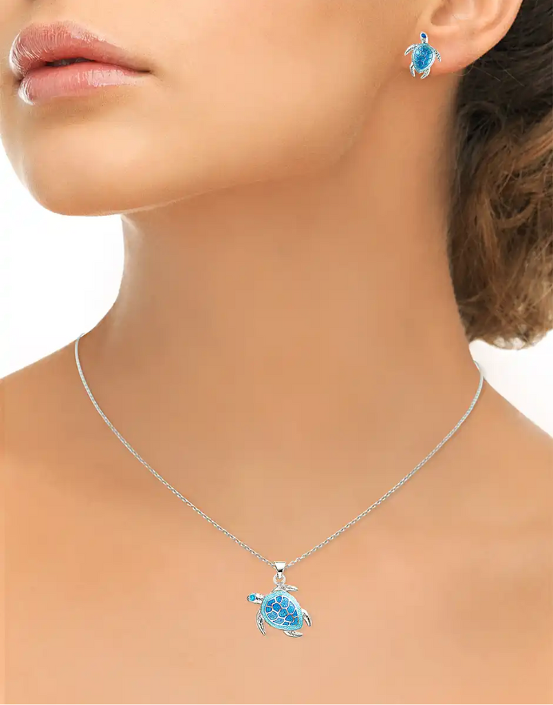This Blue Enamel Turtle Necklace features a polished sterling silver back and a rhodium-plated finish for easy care and lasting shine. The adjustable 20-inch rolo chain allows for a comfortable, customized fit. A charming accessory that combines durability with thoughtful design, perfect for everyday wear.